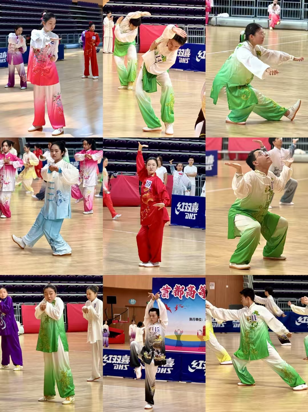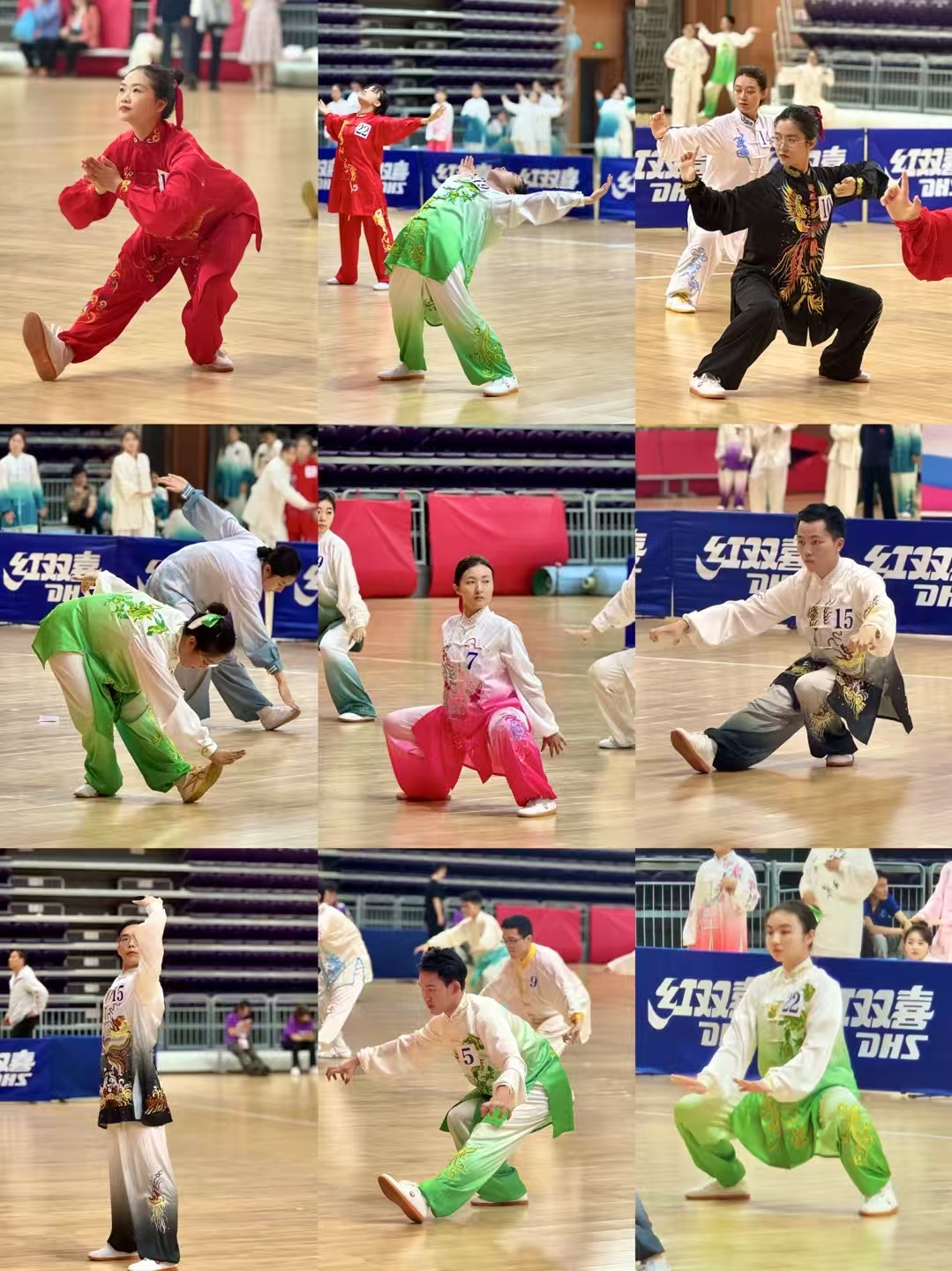 在个人项目比赛中,易筋经刚柔相济,以伸筋拔骨炼体魄;五禽戏仿生灵动,取虎鹿熊猿鸟之神韵;八段锦中正平和,调三焦气机如行云流水;大舞刚柔化形,融武舞韵律展华夏风姿;导引养生功吐纳生息,藏天人合一养生之道;马王堆导引术古朴典雅,承千年典籍生命之思。队员们勇往直前、敢于拼搏,尹海威获得甲组男子导引养生功十二法第一名,兰皓然获得甲组男子易筋经第二名,乔瑞阳获得甲组男子五禽戏第二名,兰皓然获得甲组男子马王堆导引术第二名,钱婧怡获得甲组女子导引养生功十二法第三名。