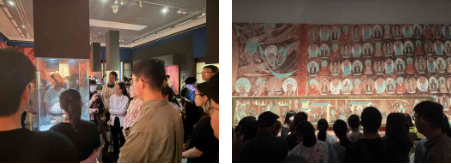 参观过程中,同学们认真聆听讲解员的专业解读,深入了解丝路艺术的独特魅力。在参观结束后,两个学院的同学展开热烈交流,分享各自对展品的理解与感悟,共同感受中华优秀传统文化的博大精深。