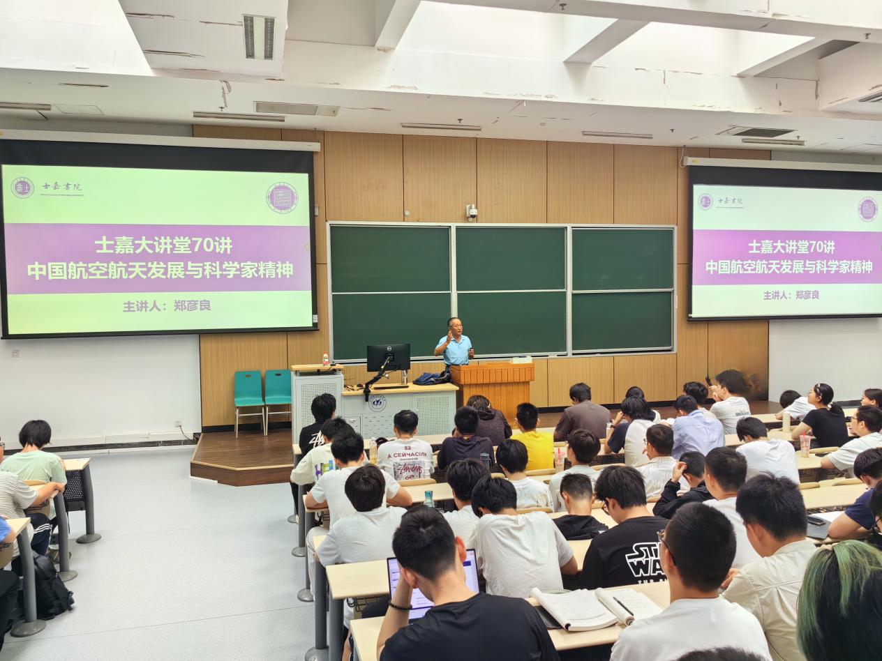 北航新闻网5月26日电(通讯员 谢贝贝)5月21日下午,士嘉大讲堂第70讲在沙河校区J0-004举行。此次大讲堂邀请到北航老教授报告团郑彦良教授做题为《中国航空航天发展与科学家精神》专题讲座。士嘉书院以及来自全校各学院的400余名学生参加了本次讲座。