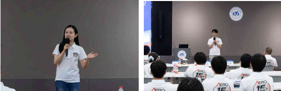 在庆典活动中,车队经理林园首先分享了近两年的“升级之路”,从2023年重返线下赛场的青涩与突破,到2024年断代后重建的艰辛与团结,从国际创新工作室成立,到启航实践队深入校企调研的“附加价值”探索,她笑称,“我们不仅造车,更在造‘梦工厂’,让每个队员都能在这里找到属于自己的赛道?!焙贾軭aero车队队长施凯耀作为“新生代代表”讲述了这支2024年成立的“国际化新军”如何依托中法教育平台,在技术攻关与对外交流中快速成长?!拔颐钦约际豕ス匚⑽幕涣魑?,全力备战2026年欧洲赛事,力争将Haero打造为北航国际化的亮丽名片?!?/p>