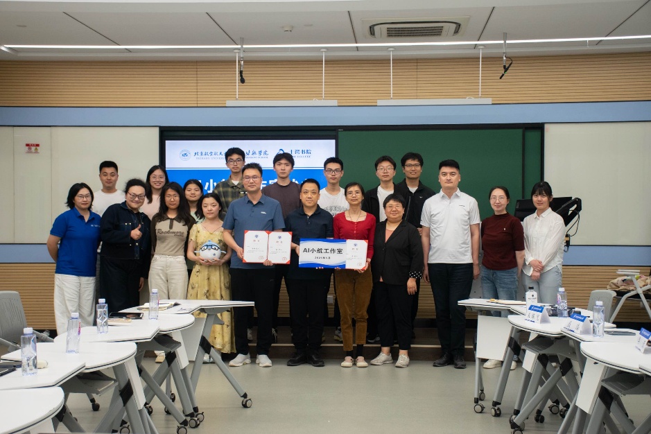 活动最后,北航学院教学部副部长郑晓宁代表北航学院向小航AI团队授牌,并颁发书院指导教师聘书。