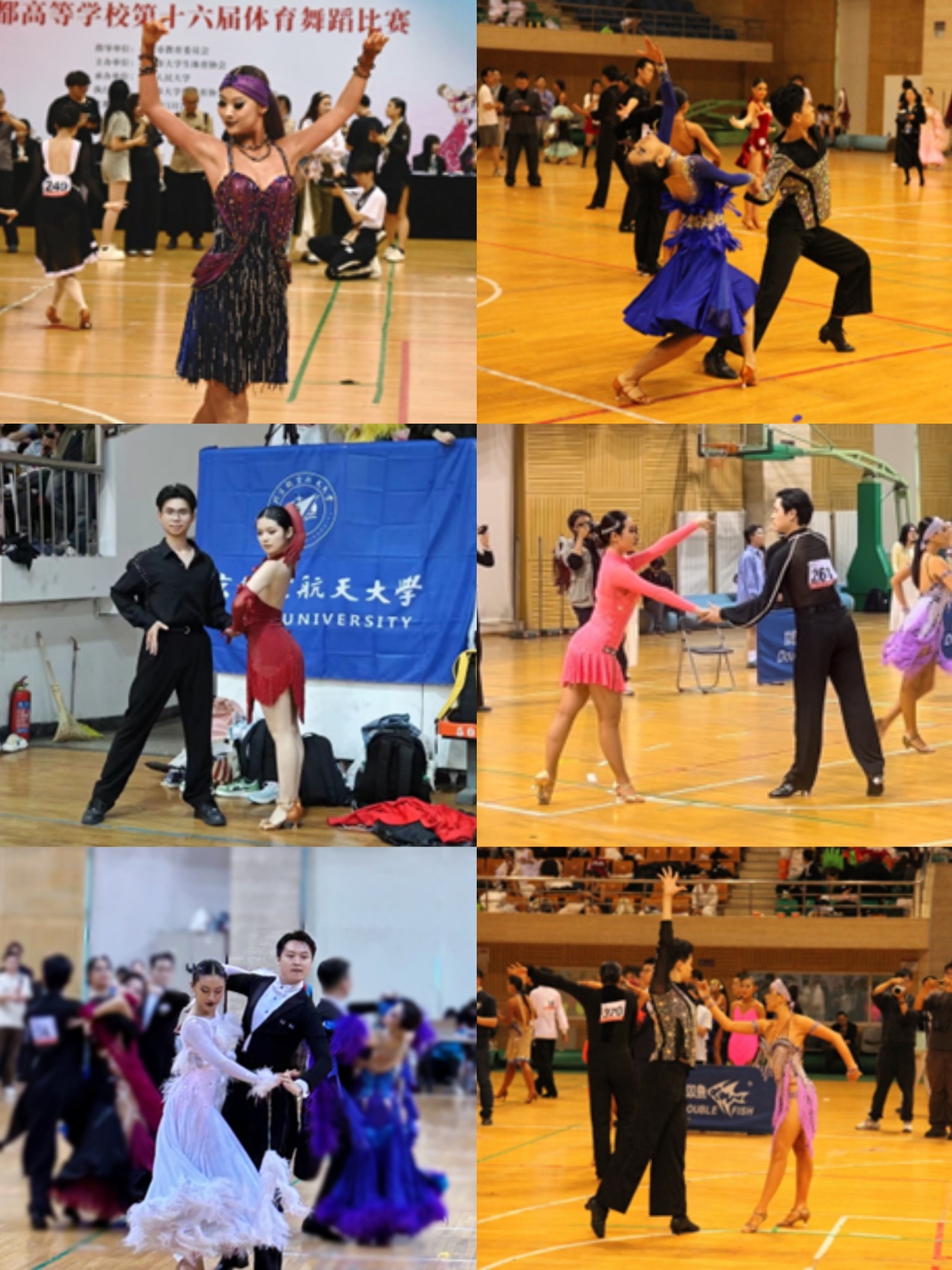 北航体育舞蹈队队员们共参加了拉丁舞9个项目组的比赛,队员们努力拼搏,齐心协力,用顽强的斗志、紧密的团队协作和优美的身体语言,尽情释放着青春的活力。最终,黄晓荷获得伦巴和恰恰恰两个单项第二名,赵淑娴和梁鼎奇获得斗牛单项第四名,曹希和吴东燃获得牛仔舞单项第五名,杨冬月和曹杰获得伦巴单项第七名,金玲妃和罗梓源获得探戈单项第七名,邢宇菲和梁鼎奇获得伦巴单项第八名,彰显了国标舞的独特魅力,更展现了北航学子昂扬向上的精神风貌。