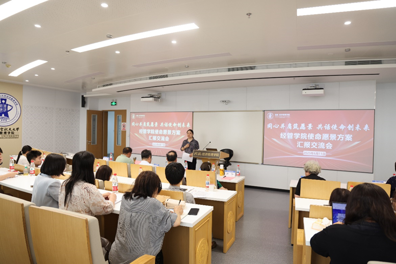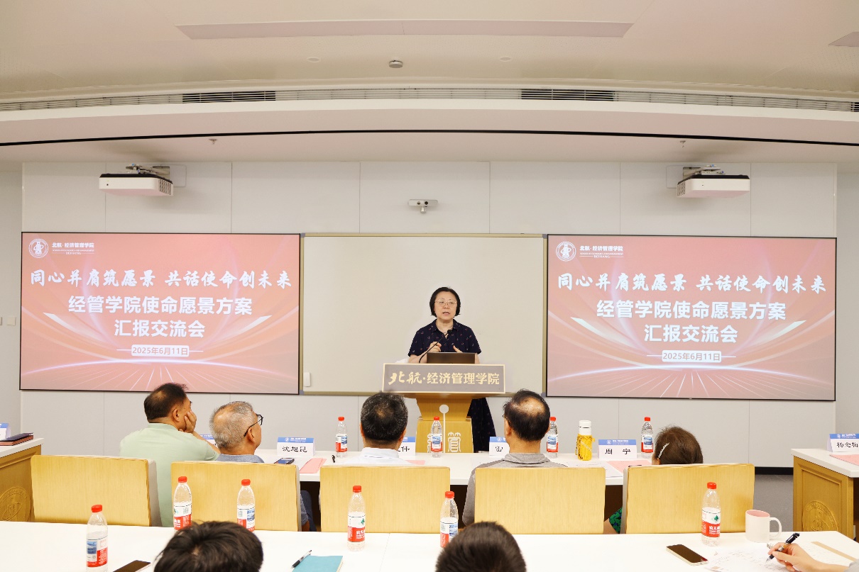 北航新闻网6月16日电(通讯员 陈潇潇)6月11日下午,经济管理学院“使命愿景方案汇报交流会”在新主楼A618报告厅举行。本次活动旨在凝聚学院发展共识,提炼兼具学科特色与时代担当的使命愿景,为学院未来发展锚定精神坐标?;嵋橛删苎г?span style="text-indent: 28px; text-wrap-mode: wrap;">副院长牟晖主持。