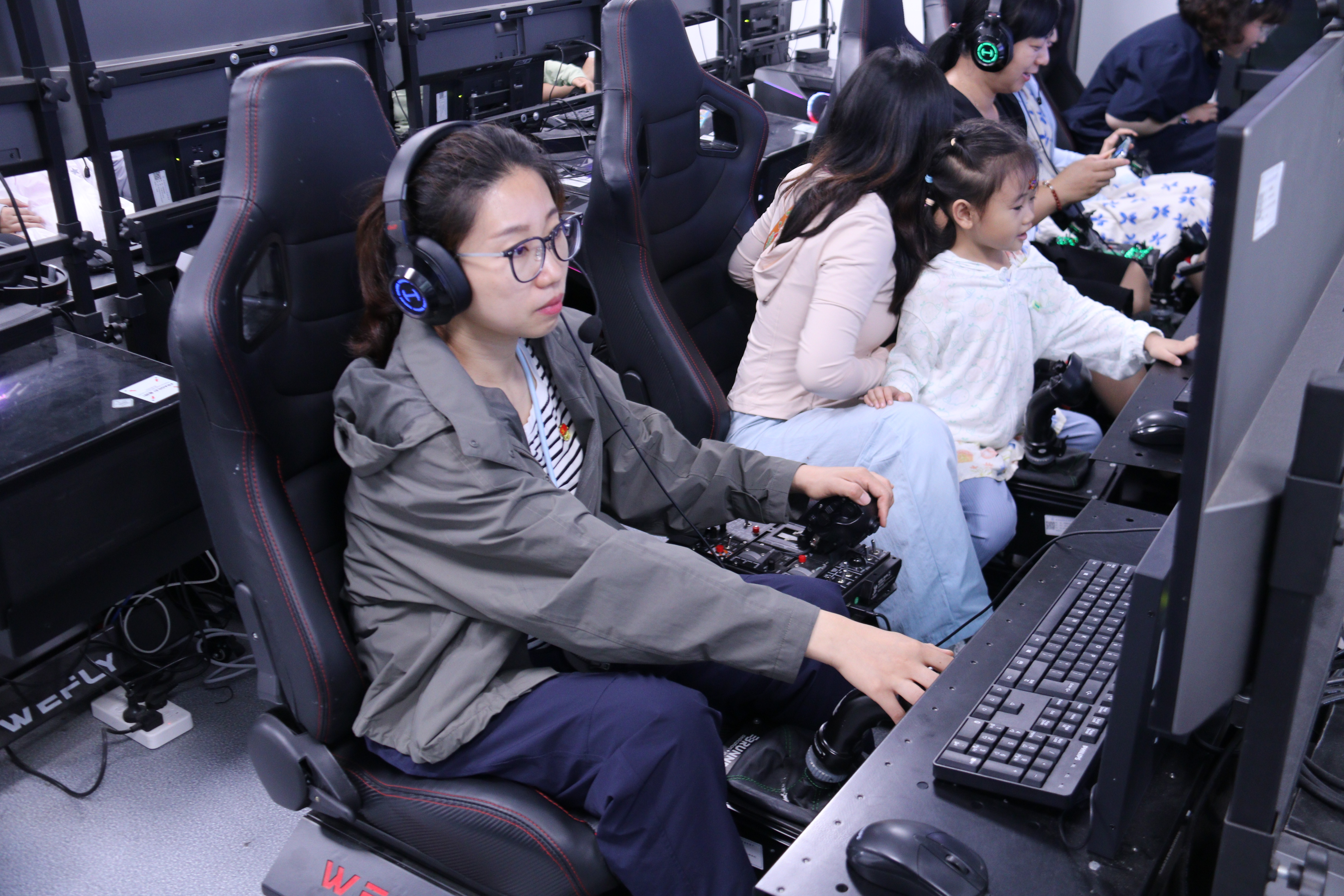 在新一代全数字化飞行器科教协同创新中心,党员们借助先进的模拟飞行设备,沉浸式体验飞行操控,在虚拟蓝天中感悟航空科技魅力。这一环节不仅展现了我国航空领域的前沿技术成果,更让大家深刻体会到科技创新对教育教学工作的赋能作用,激发了党员教师将创新思维融入幼儿教育实践的责任感。