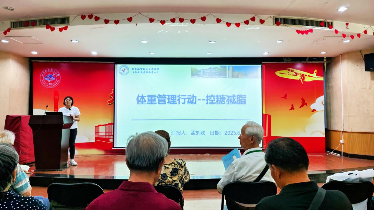 北航新闻网7月1日电(通讯员 张嘉璇)夏日送福利,健康暖人心。6月26日下午,离退休工作处联合校医院为广大离退休教职工精心举办了“控糖减脂专题讲座”和“体检报告现场解读”两场健康活动,旨在提升老同志们的健康素养,为他们的安康晚年添砖加瓦。