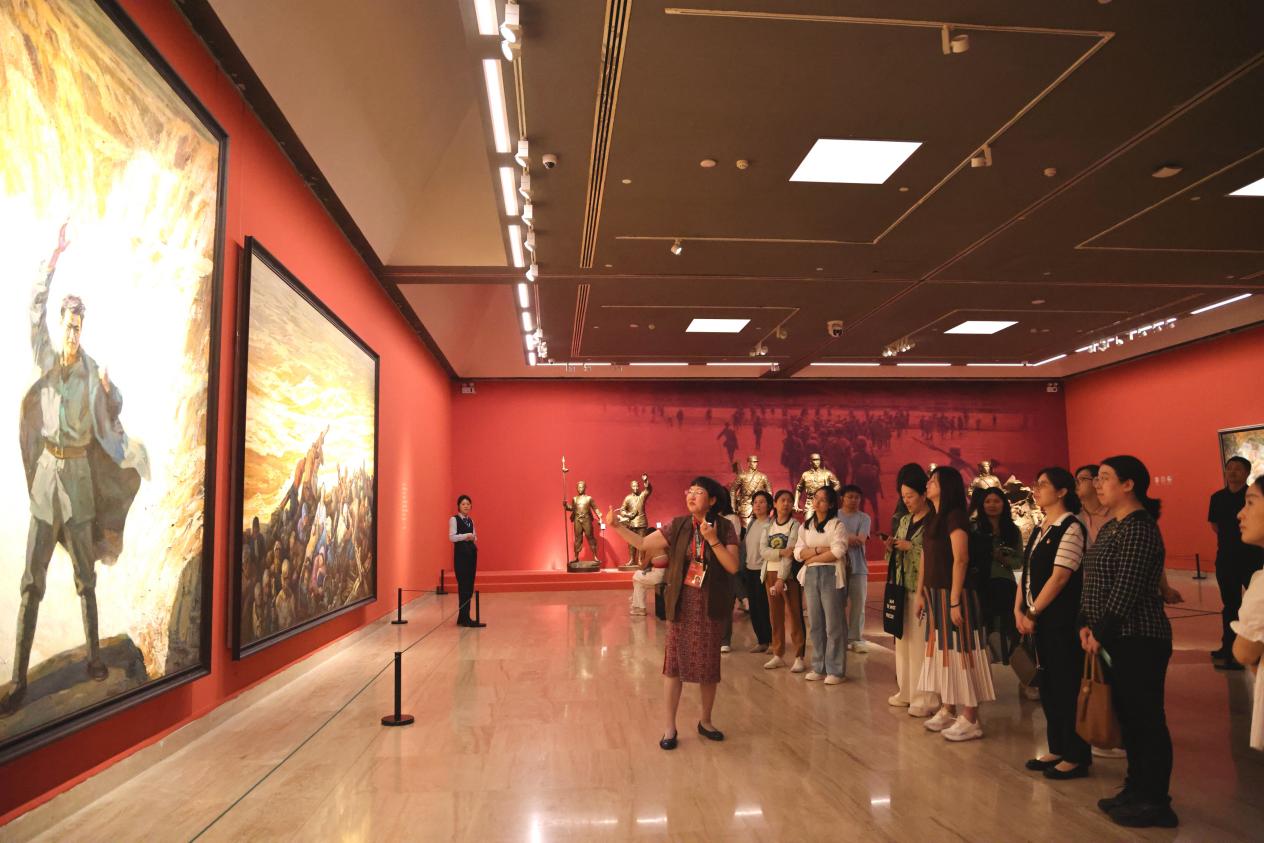 北航新闻网9月29日电(通讯员 朱蕊寒/文 王旭/摄影)为深入学习贯彻习近平总书记关于教育强国的重要指示精神,赓续红色血脉、涵养育人初心、提升美育素养,美育中心与教师发展中心联合组织教职工赴中国美术馆,开展纪念中国人民抗日战争暨世界反法西斯战争胜利80周年主题现场教学活动?;疃ü帐跫陀肜坊赝嘟岷系姆绞剑讨肮ご蛟斐两剿颊逃逖?。