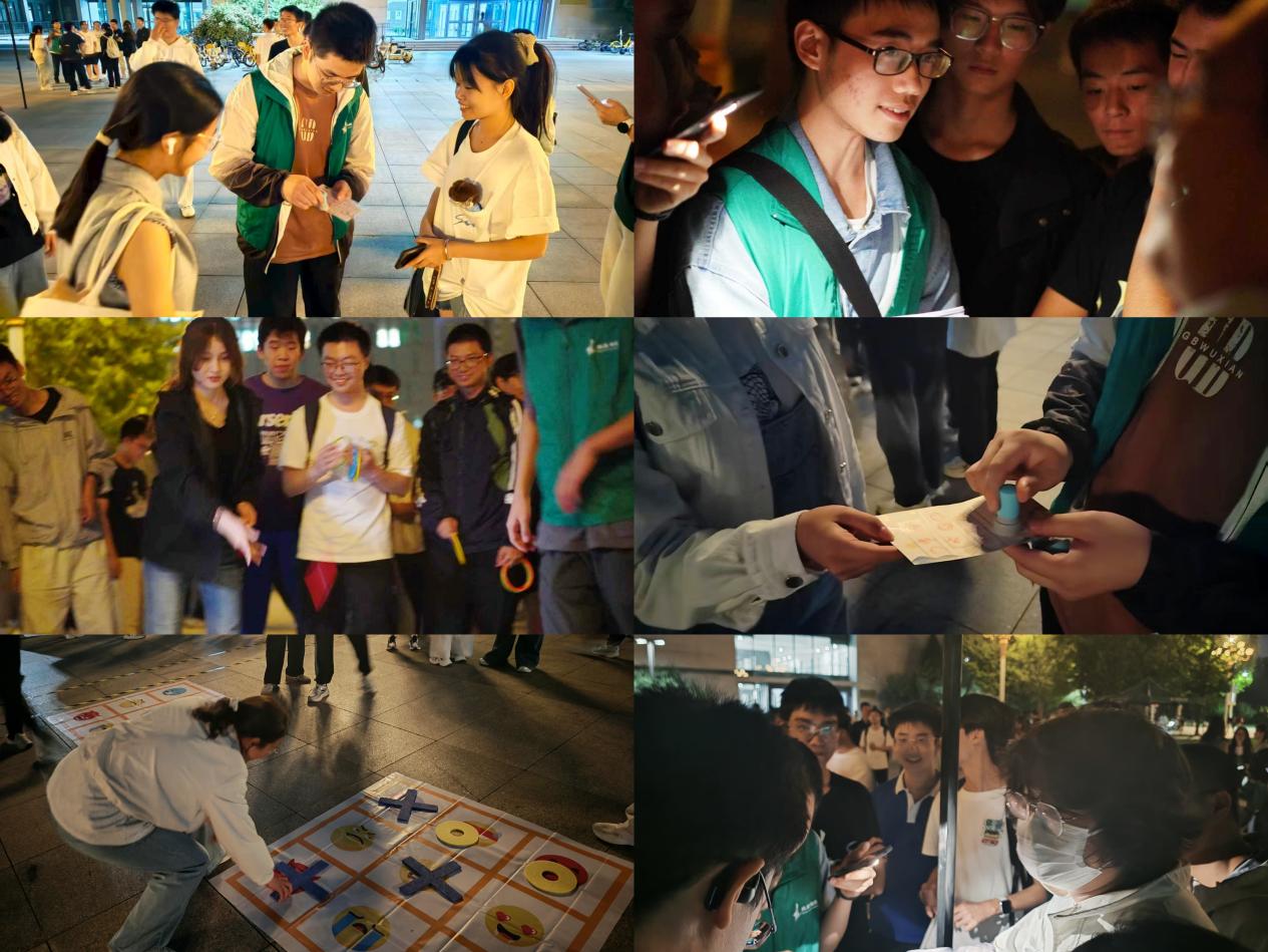 外场活动在世纪之声广场进行。各梦拓组持集章卡,有序参与“月饼拼盘”“逛三园”“套圈”“奔跑版‘井字棋’”“321看这边”“扭蛋机猜灯谜”“答非所问”7项趣味游戏——同学们在紧张刺激的“月饼拼盘”中展开记忆对决,瞬间拉近了彼此的距离;在节奏欢快的“逛三园”考验反应能力与知识储备,展现了团队的活力与创意;在“套圈”场上凝神投掷,感受了专注与协作的力量;在“奔跑版井字棋”中融合了智力与速度,将团队的默契配合展现得淋漓尽致;在反应力大挑战“321看这边”中一致应对挑战,于瞬间的判断中培养出十足的默契;在“扭蛋机猜灯谜”中体会智慧的碰撞,共同品味传统文化的韵味与破解谜题的喜悦;在妙语连珠的 “答非所问” 环节中,用天马行空的“错位”回答打破常规思维,升华团队的独特联结。现场秩序良好、气氛热烈,同学们也在轻松的互动、协作与竞技中增进了解、加深感情。