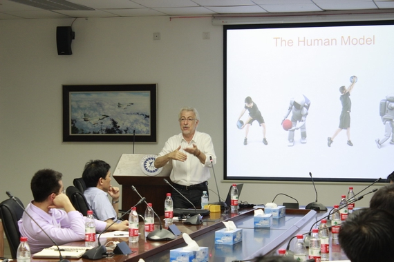 7月7日下午,应北航机械工程及自动化学院院长赵罡教授及机器人研究所王田苗教授邀请,国际机器人研究基金会主席Oussama khatib访问我?;笛г杭盎魅怂⒆隽?ldquo;Working with Robots”主题报告。机械学院院长赵罡教授、德国汉堡大学张建伟教授、日本名古屋大学Toshio Fukuda及王田苗教授出席了讲座。近百名师生参加报告会,会议由我校“卓越百人计划”文力副教授主持。
