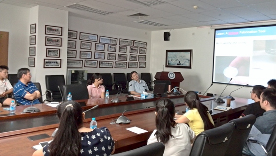 洪明辉教授做了题为“Laser Precision Engineering: from Microprocessing to Nanofabrication”的报告,详细阐述了激光技术在微纳制造领域当前的研究重点与相应方法,并指出了激光技术在精密制造和再制造工程研究领域的发展趋势。会间,洪教授详细解答了与会师生的提问并给出相关建议。 双方就激光制造的发展前景及其在复杂产品制造的应用等问题进行了深入交流和探讨。