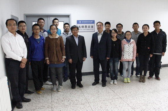 本次活动前,沙河校区管委会主任姚仰平教授与王华明教授会面,并就创新人才培养模式等问题进行了交流。