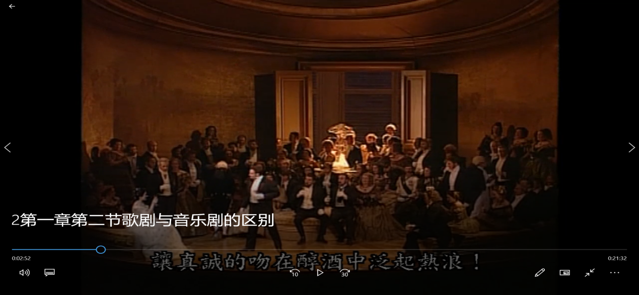 歌剧作为一门集戏剧、音乐、舞蹈、美术为一体的综合表演艺术,其音乐美、故事美、舞台美,为课程的“美”提供了基础,但是也为课程制作时带来了困难。前期设计了许多方案,最终选择以棕色的PPT为背景,教师着黑色西服与歌剧舞台的华丽、庄重配合,从而达到讲解内容、教师服装、PPT风格与歌剧舞台的视觉统一。