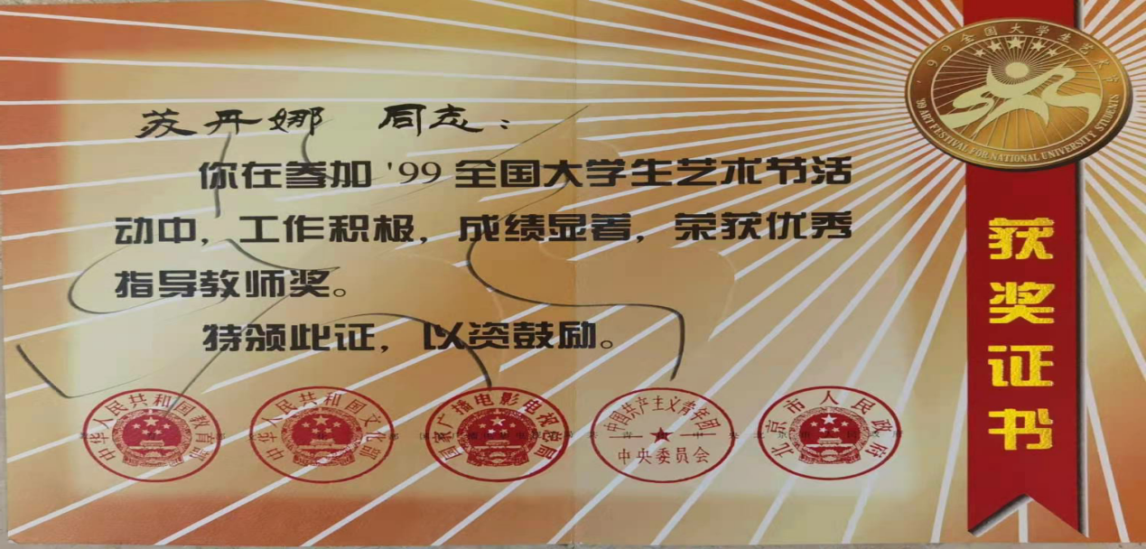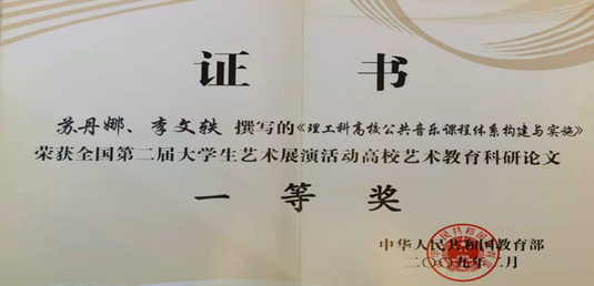 苏丹娜曾获文化部、教育部七部委联合颁发的“首届全国大学生艺术节“合唱比赛一等奖等两项;文化部、教育部七部委联合颁发“优秀指导教师奖”;教育部“国家精品在线开放课程”认定;教育部“全国高校艺术教育科研论文“比赛一等奖等三项;“第十五届全国高校多媒体课件比赛”优秀奖;“全国高校教师讲课比赛”一等奖;国际、全国合唱比赛一等奖等多项;北京市优秀指挥奖;“北航2019教学优秀一等奖”一项;北航2019年“教学名师奖”一项;北航奖教金、西飞奖教金、教学成果奖等8项;连续多届被学生评为“我心中最爱戴的老师------十佳教师”和“优秀教师”?!兑衾种鼙ā返榷嗉颐教宥云浣凶ㄌ獗ǖ馈?/p>