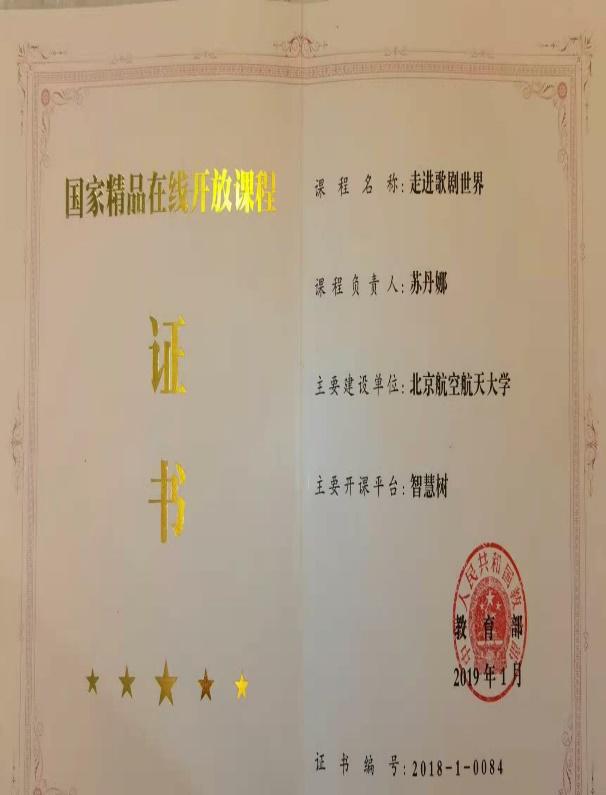 2012年,校级重点课题《北航公共艺术选修课网络教学的研究与实践》开始了线上教学研究;2014年,在继续教育学院的支持下,录制了第一门线上课程《打开歌剧之门》,这门线上课程作为北航继续教育学院远程必修课,获得学生高度欢迎和称赞。2015年,在《打开歌剧之门》的基础上,进一步调整、改进与提炼教学内容,形成以歌剧构成要素、歌剧简史和歌剧经典名段欣赏为教学内容,引导学生在歌剧名段分析与鉴赏中,丰富审美经验,提高审美能力,培养审美情趣的MOOC《走进歌剧世界》。MOOC《走进歌剧世界》于2016年3月在智慧树教育平台上线向全国高校开放。至今已有267所高校、超过12万学生完成课程学习,满意度达96.2%以上。2018年,被教育部评为“国家精品在线开放课程”。