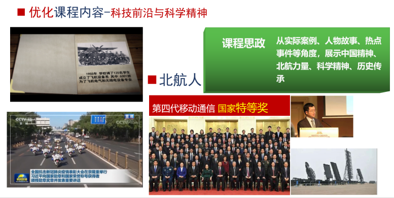 北京航空航天大学“数字信号处理”课程服务于国家航空工业急需的无线电人才培养,由雷达信号处理教研室于上世纪70年代设立。经过几十年的传承与发展,该课程已建立起包含专业特色教材、多种教学资源、层次化课程实验、线上线下混合方式在内的完整教学体系。针对数字信号处理领域技术发展迅速的特点,课程团队始终坚持与时俱进,将科技学术前沿成果引入课堂,通过专题研讨、创新实验、挑战性项目等方式,深化学生对课程知识的理解及运用,培养解决复杂工程问题与自主创新能力。