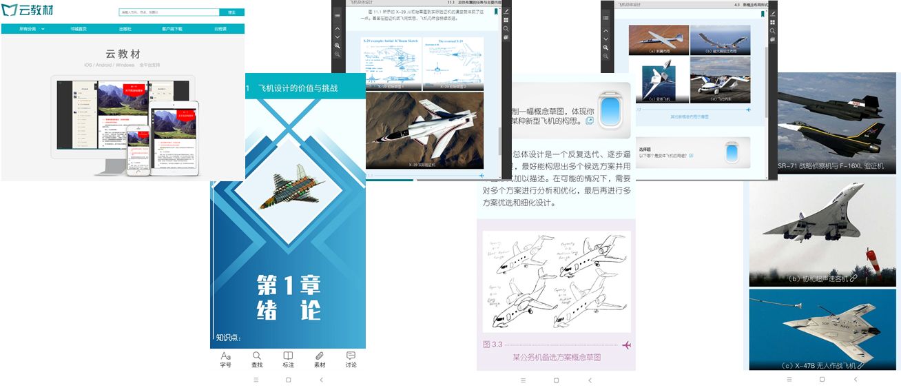 2020年,课程组在北航出版社等单位的支持下,结合新媒体技术,完成了融媒体跨平台(个人电脑、平板手机移动终端等)的《飞机总体设计》云教材,这也是国内飞行器设计专业首部云教材。
