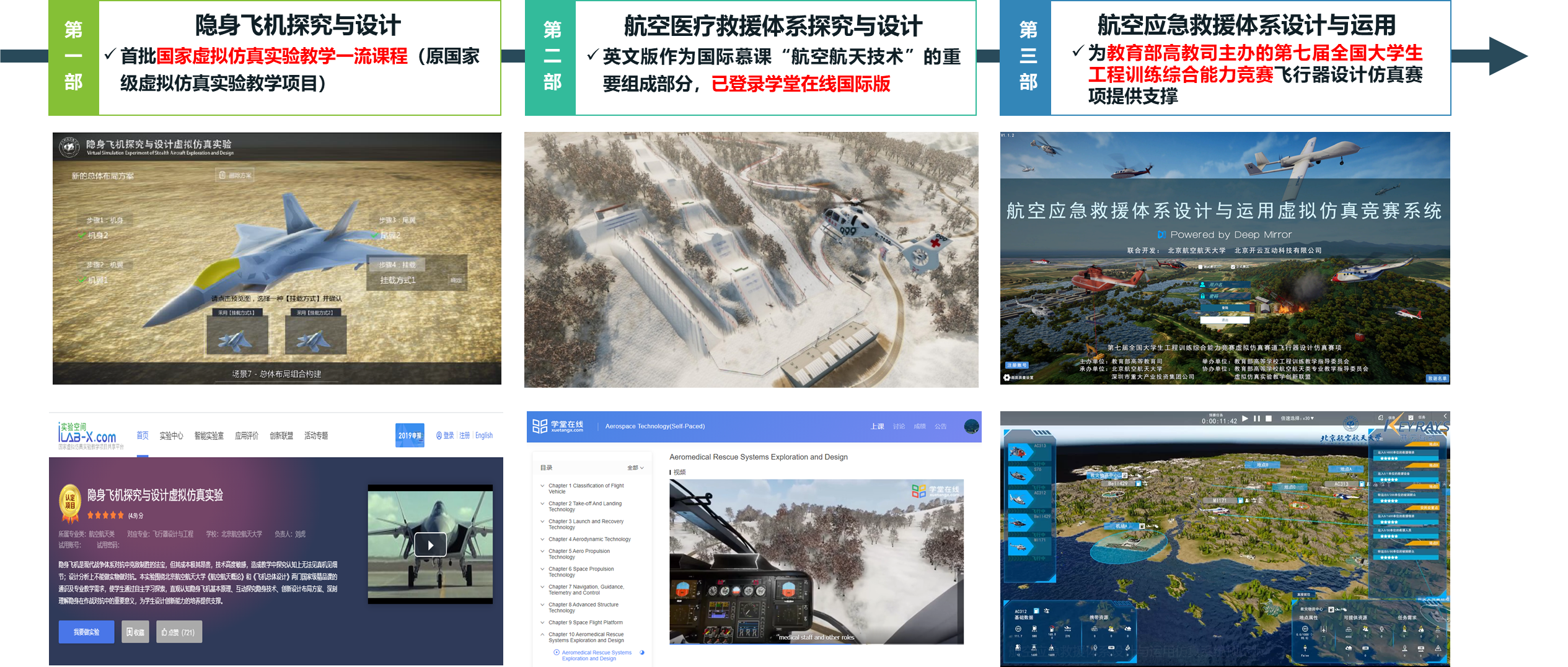 第二部“航空医疗救援体系探究与设计”实验以冬季运动医疗保障为背景,其英文版作为“航空航天技术”国际慕课的重要组成部分,已登录学堂在线国际版,作为国际化虚拟仿真实验教学的先行者。