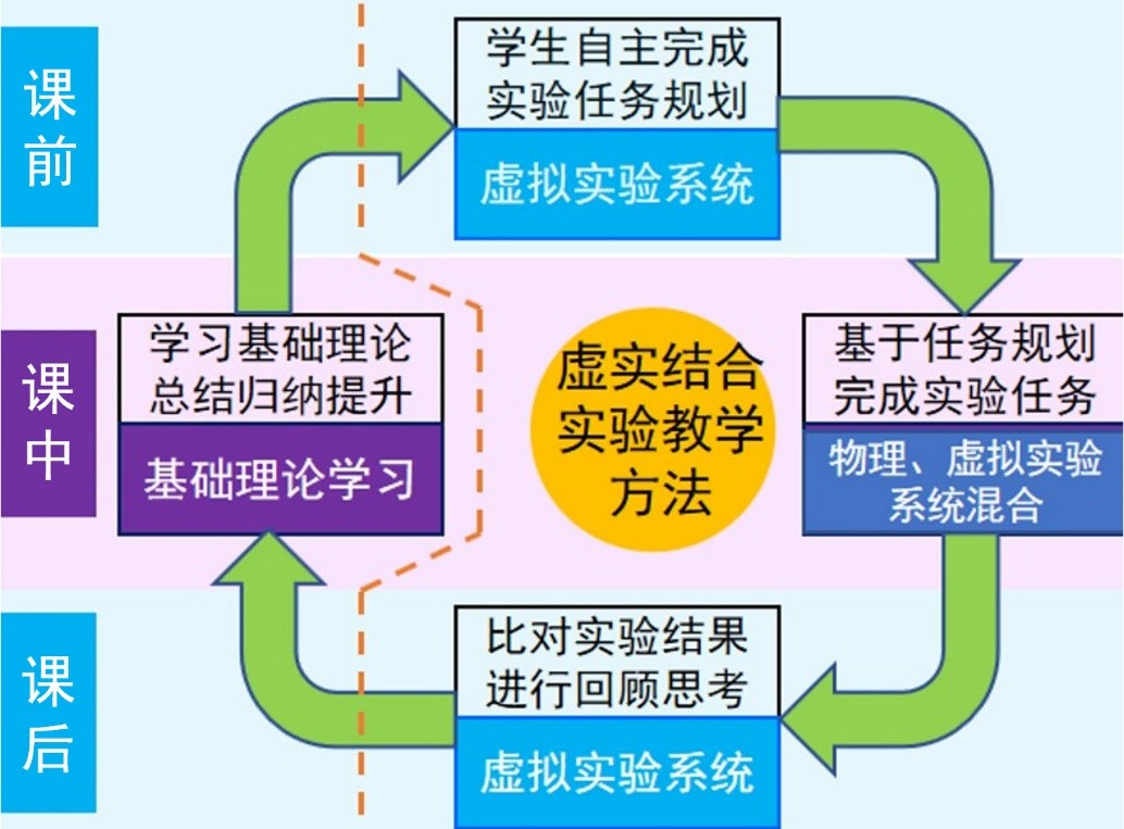 探索基于工程任务驱动的“虚拟实体协同、课内课外联动”的实验教学方法,实现以学生为中心的综合素质培养。打破传统实验内容的“孤岛”模式,引导学生拓展和融合多门课程知识,实现创新实践能力的“岛链式”贯通培养。