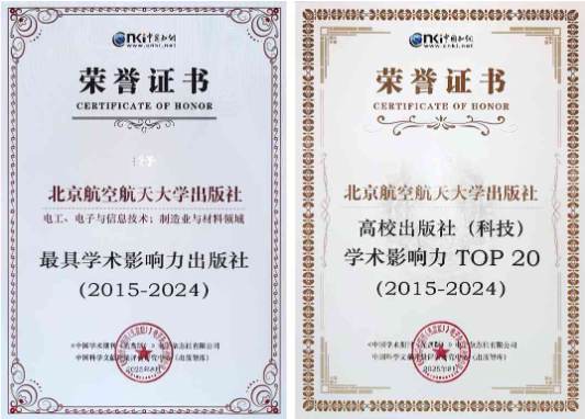 北航新闻网9月15日电(通讯员 张锦花)近日,第十五届中国国际数字出版博览会期间,中国知网·中国科学文献计量评价研究中心发布了2025年最具学术影响力出版社榜单。北京航空航天大学出版社入选最具学术影响力出版社(2015-2024年),在电工、电子与信息技术领域位列第七,在制造业与材料领域位列第十三。同时,入选高校出版社学术影响力TOP 20(2015—2024年),在自然科学与工程技术领域位列第四。
