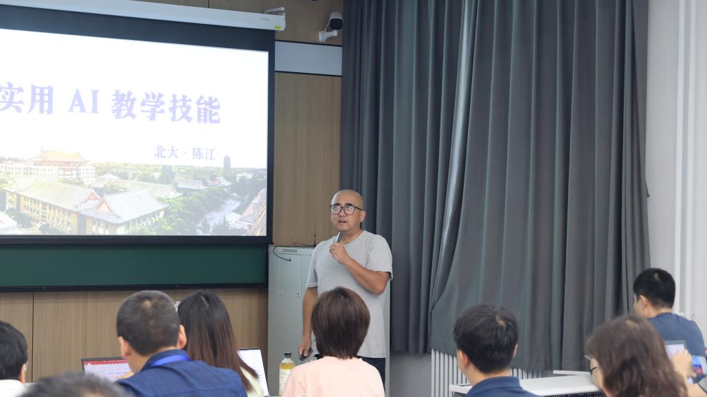 9月5日,北京大学陈江教授受邀作了题为“实用AI教学技能”的专题讲座。讲座中,陈江围绕AI大模型在教学场景的实用价值展开,从五个方面进行讲解与演示。在直接应用AI方面,他演示无线投屏、主观题接龙、AI+分组讨论等如何调动学生积极性。在间接应用AI方面,他重点围绕教师常用的Office软件展开,同时分享纸质文档电子化转换、思维导图智能生成及高品质PPT制作方法。此外,陈江还针对多媒体教学需求,讲解图像编辑生成的优化技巧,演示“图生视频”的操作流程等,并展示数字人在教学场景的应用潜力。讲座尾声,陈江特别强调“教师不仅要持续学习AI技术,更关键的是将AI工具与自身教学优势深度融合?!?/p>
