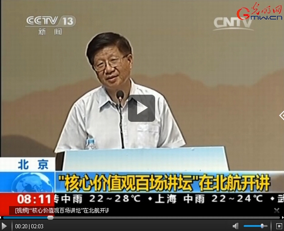 【主持人】由中宣部指导,光明日报社、中国人民大学、中国伦理学会共同主办的“核心价值观百场讲坛”第二讲日前在北京航空航天大学举行。