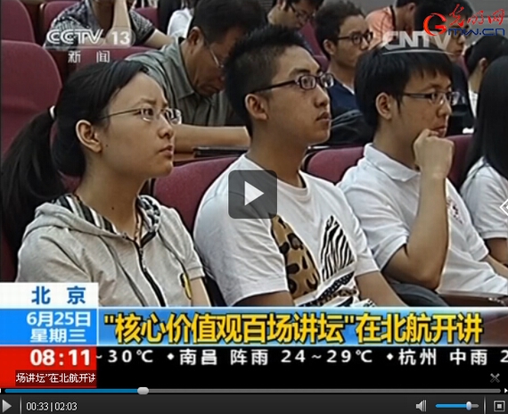 【解说】据了解,核心价值观百场讲坛除在高校举办报告会外,还将陆续走进部队、机关、科研院所等。