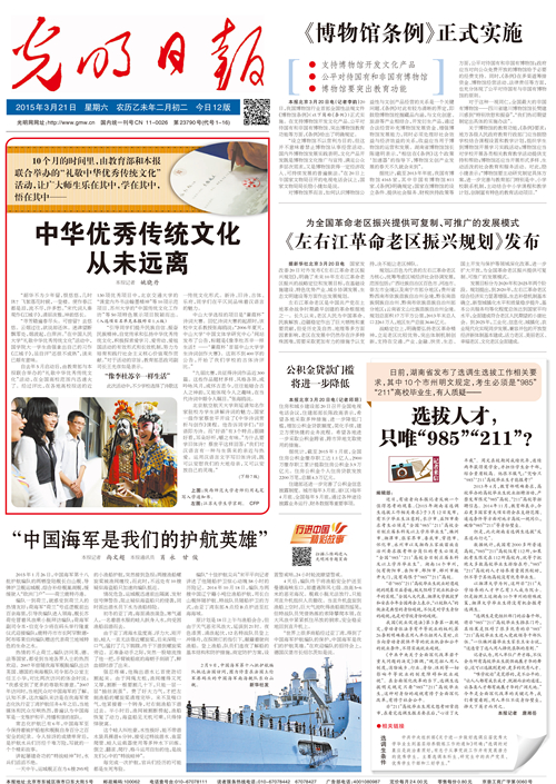 3月21日,《光明日报》以《中华优秀传统文化从未远离》为题,在头版头条报道了各地高校举办的“礼敬中华优秀传统文化”活动,其中提到我校聘请的驻校作家蔡世平开设的《中华诗词赏析与创作》课程,认为该课程在为学生讲解旧体诗词的魅力的同时,培养了学生对汉语的亲近与热爱,并且帮助学生“安放自己的灵魂”。