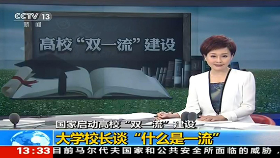 编者按:2015年11月5日,国务院正式发布《统筹推进世界一流大学和一流学科建设总体方案》。总体目标是,推动一批高水平大学和学科进入世界一流行列或前列。到本世纪中叶,一流大学和一流学科的数量和实力进入世界前列,基本建成高等教育强国。中央电视台新闻频道聚焦国家启动高校“双一流”建设做了专题报道,并就“什么是一流”,专访了北航校长徐惠彬院士、天津大学校长李家俊、西安交通大学校长王树国等高校校长。专题报道于11月5日在CCTV新闻频道《新闻直播间》播出。