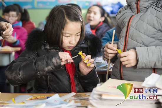 12月4日研支团队员们又来到县直小学。这次教孩子们做的双翼航模稍有难度,很多同学一开始都害怕自己做不好,但是在成员们的悉心讲解和耐心帮助下,孩子们慢慢地掌握了方法,每个人都成功制作出了自己的航模。
