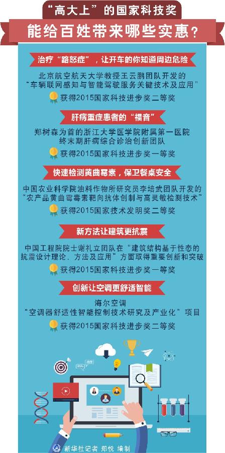 图表:“高大上”的国家科技奖能给百姓带来哪些实惠? 新华社记者 郑悦 编制