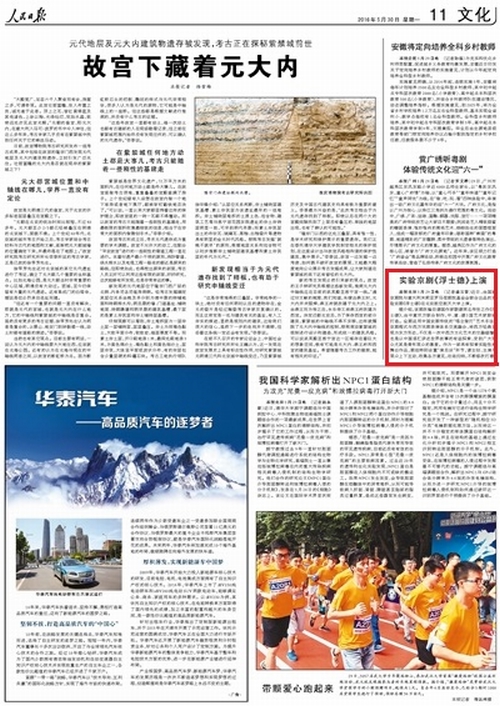 《人民日报》2016年5月30日报道实验京剧《浮士德》在北航上演: