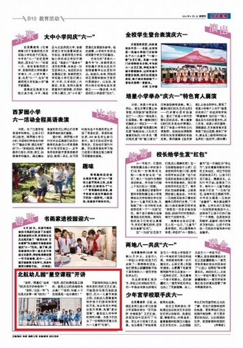 《北京晨报》2016年6月2日报道北航幼儿园“星空课程”开讲: