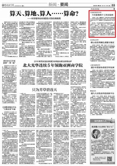 《中国教育报》2016年6月21日报道北京航空航天大学今年新增两个工科实验班: