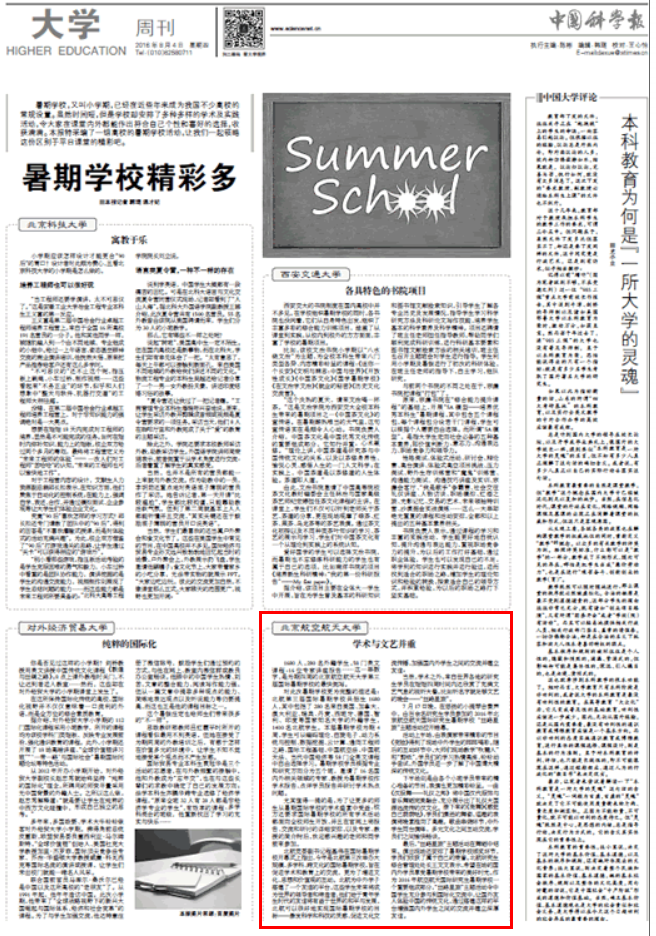 《中国科学报》8月4日报道:《暑期学校精彩多》