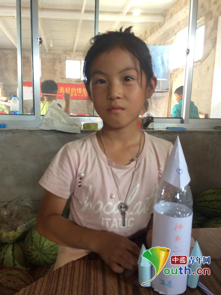 图为研支团成员指导小女孩做的手工作品神舟二号。北航研支团 供图