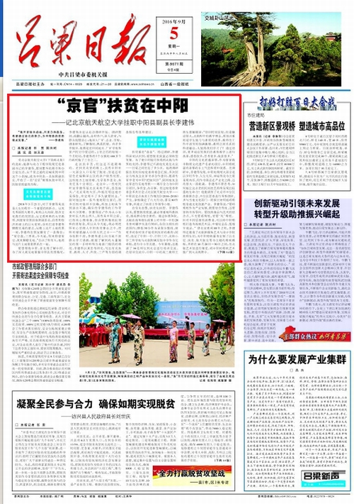 编者按:《吕梁日报》2016年9月5日头版头条报道我校能源与动力工程学院党委副书记李建伟在中阳县挂职事迹:
