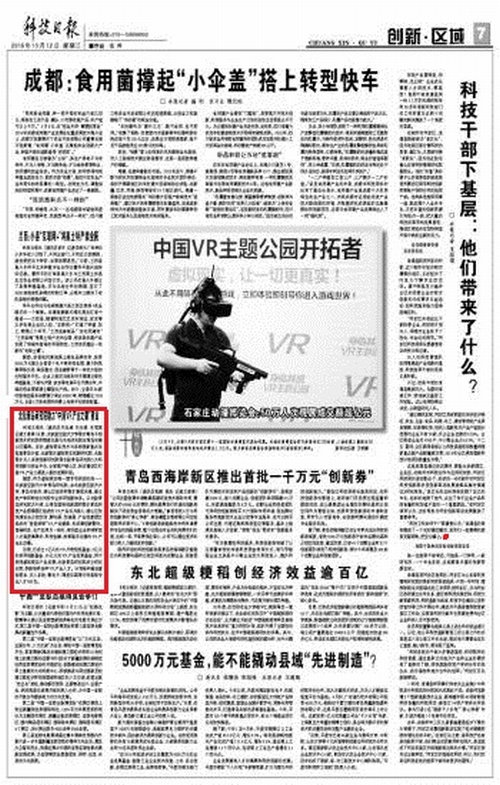 《科技日报》2016年10月12日报道北航青岛研究院助力“中国VR产业之都”建设: