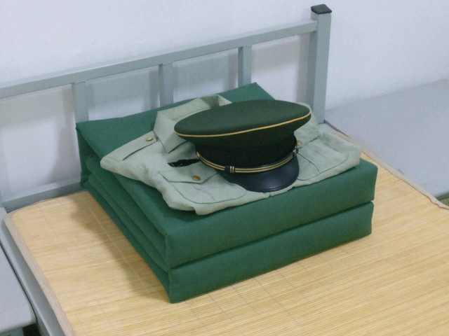赵松青的床铺。两年时光里,赵松青经历了从一名大学生到武警战士的转变,新华社发。