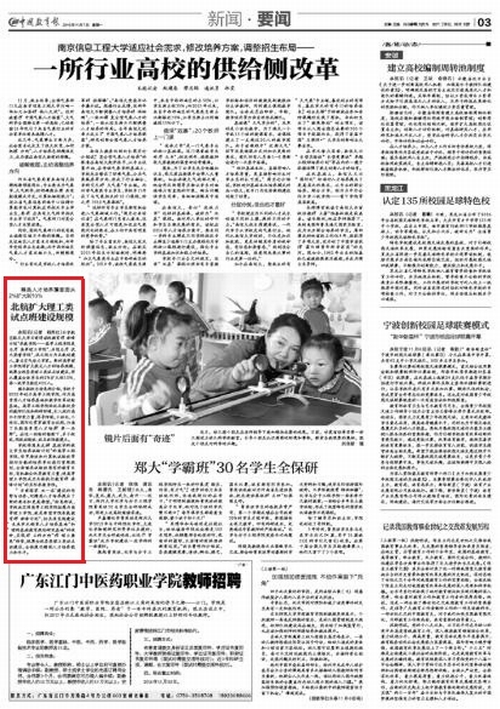 《中国教育报》2016年11月7日报道北航扩大理工类试点班建设规模: