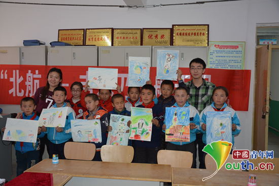阿合加尔小学全校只有12名学生,他们全部都是哈萨克族留守儿童,校园狭小偏僻,教学资源匮乏。来到这里,北航研支团为孩子们讲述了神舟飞船扣人心弦的航天之旅,并与孩子们一起绘制了心目中的太空。牧区孩子们用富有想象力的天真笔触画出了美丽的宇宙,不仅想象自己成为了航天员,更是将五星红旗带上了太空。