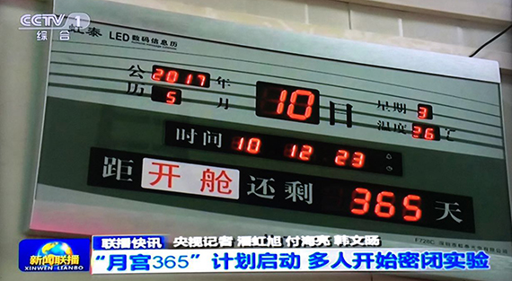 CCTV《新闻联播》2017年5月10日报道:“月宫365”计划启动 多人开始密闭实验