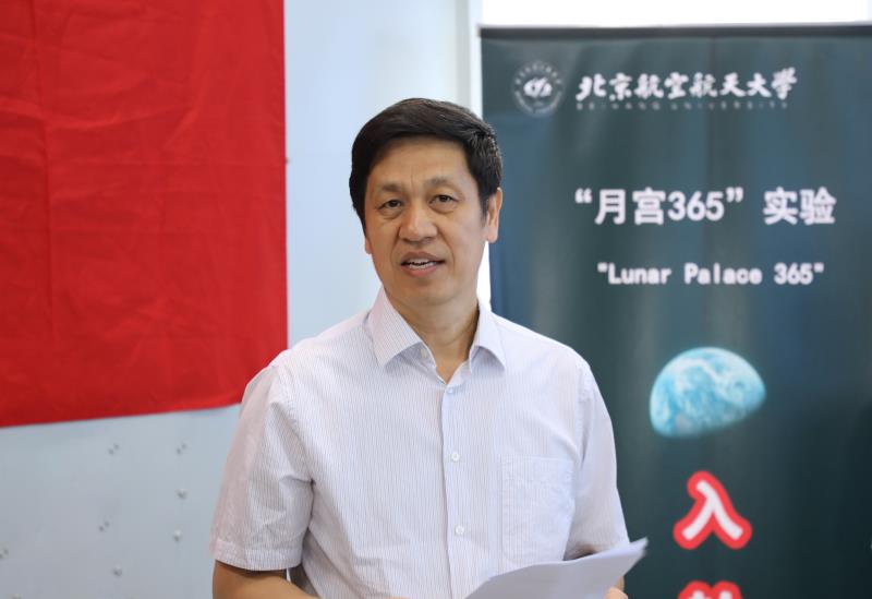 校长徐惠彬院士在仪式上讲话,他指出,此次“月宫365”大科学实验,是我国在此项技术上继续冲击世界前沿目标的又一次重要行动,必将为我国载人深空探测的生命保障研究提供更加先进的理论和技术支撑。刘红教授领衔的月宫团队是一个坚持梦想、勇于拼搏的团队,他们建立了我国生物再生生命保障系统的理论和技术体系,在国际顶尖领域发出了北航声音、彰显了中国自信。徐校长希望同学们发扬“有梦想、有热情、有豪情、有干劲、有勇气、有担当”的精神,舱内外成员团结协作,科学周密、安全有效地开展科研探索,顺利完成实验计划,学校期盼大家平安凯旋。