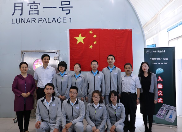 5月10日上午,“月宫365”计划入舱仪式在北京航空航天大学举行,首批4名入舱志愿者刘慧、刘佃磊、胡静斐、高寒进入月宫一号实验舱。