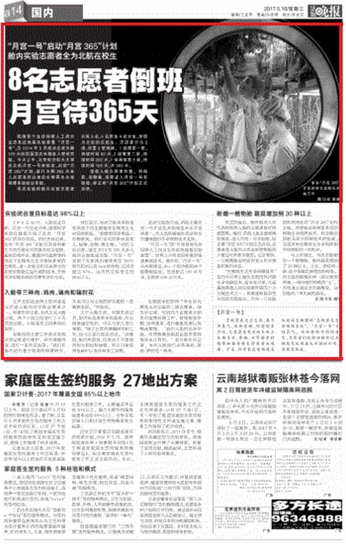 “月宫一号”启动“月宫365”计划 舱内实验志愿者全为北航在校生