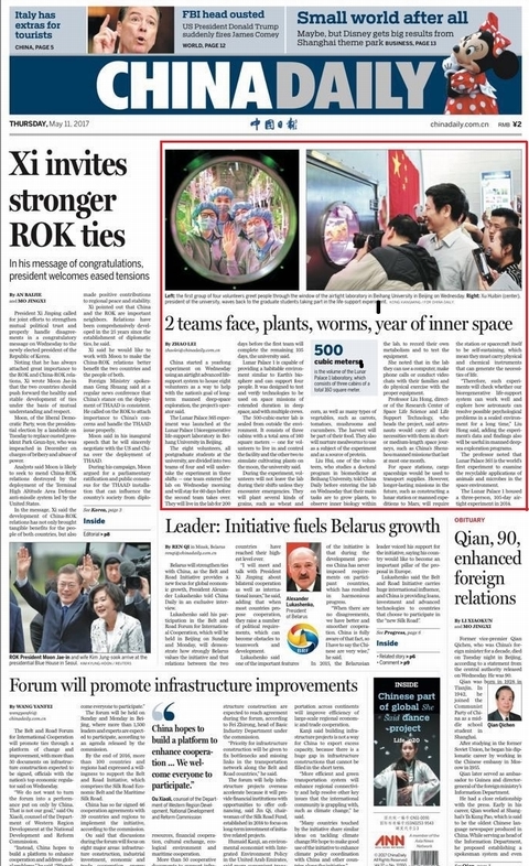 "Therefore, such experiments will check whether our bioregenerative life-support system can work well and explore how astronauts can resolve possible psychological problems in a sealed environment for a long time," Liu Hong said, adding the experiment's data and findings also will be useful in manned deep-sea exploration programs.