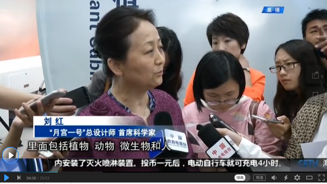 【同期】“月宫一号”总设计师 首席科学家 刘红:我们建立了一个四生物链环的系统,里面包括植物、动物、微生物和人,这样我的系统的稳定性和闭合度都会大幅度的提高。这也是世界上首次。