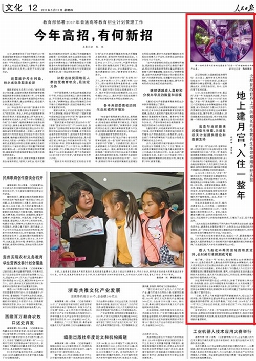 《人民日报》2017年5月11日报道北航挑战世界上时间最长的生物再生生命保障系统实验:
