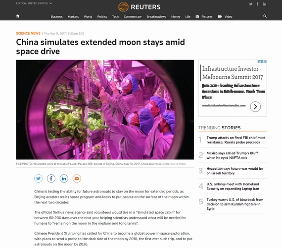 "The latest test is vital to the future of China's moon and Mars missions and must be relied upon to guarantee the safety and health of our astronauts," Liu Zhiheng of the Chinese Academy of Sciences told the news agency.