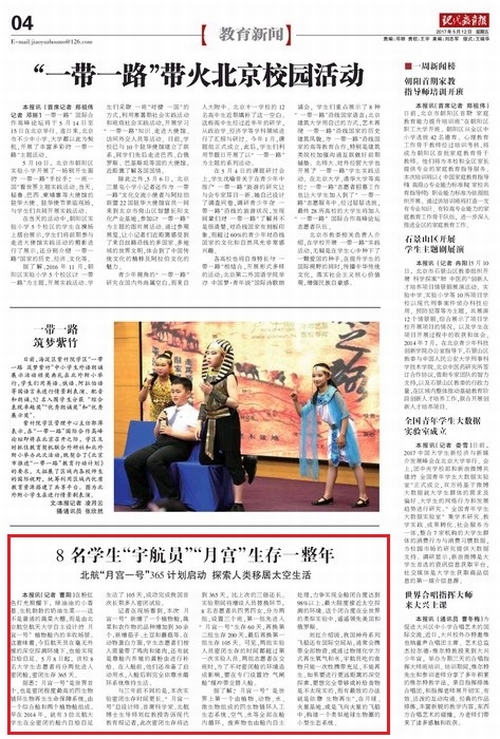 《现代教育报》2017年5月19日报道我校“月宫365”计划: