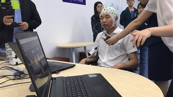 日前,第四届中国机器人峰会正在浙江余姚举行,现场有大批智能化程度非常高的机器人,可以完成很多目前人力和 普通机器人都无法完成的任务,5月16日下午2点30分,浙江卫视女主播莎莎实地探访了峰会现场,其中报道了我校李阳副教授带领的脑机接口创新团队与宁波市智能制造产业研究院罗静静博士团队协同开发的“意念控制转运床”。