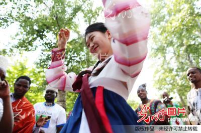 当日,以“梦想启航在丝路”为主题的“北京航空航天大学第六届国际文化节暨毕业嘉年华”在京举行。来自41个国家的留学生以多种形式展现多姿多彩的各国文化风情。